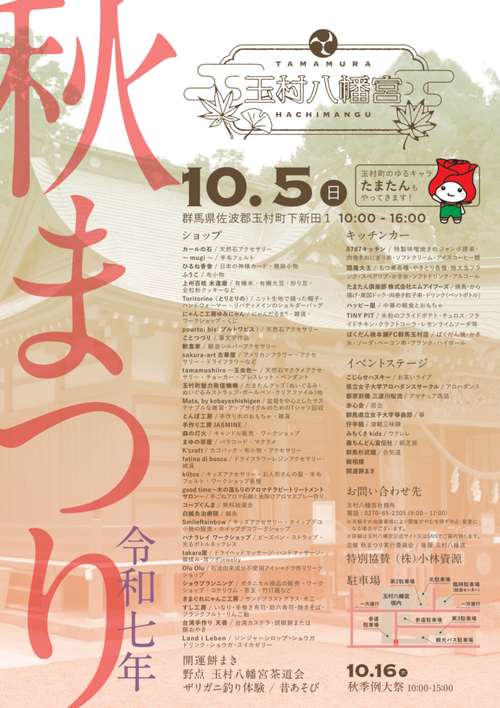 【出店します!】10/5(日)玉村八幡宮秋まつり開催!