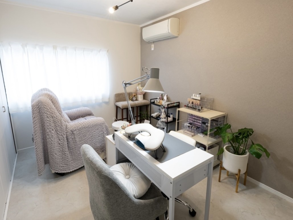 一軒家の一室をリフォームした完全個室のプライベートネイルサロン。爪に優しいフィルイン導入店です。日曜日のみ託児が可能なため、お子さん連れでもゆっくりネイルを楽しめます。