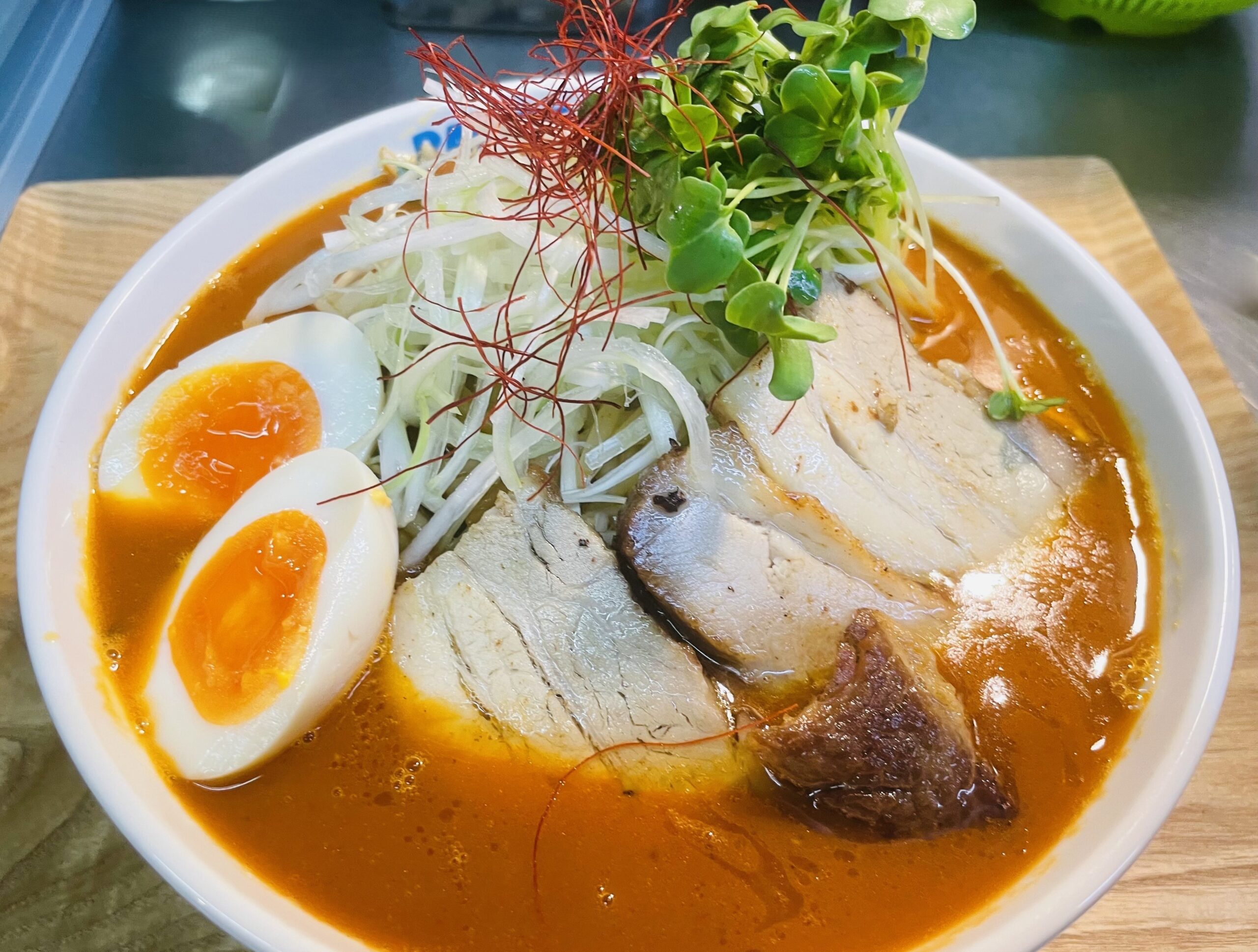 時にはチーフきまぐれのお得な限定商品が出ることも。常連の方からご新規の方までアットホームな雰囲気で食事を楽しめるので、昼夜問わずがっつりラーメン食べたいなという時にはぜひ一度利用してみてください。テラス席もあるのでワンちゃん連れにもオススメです。